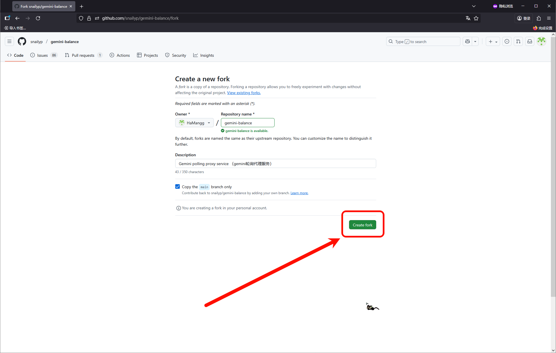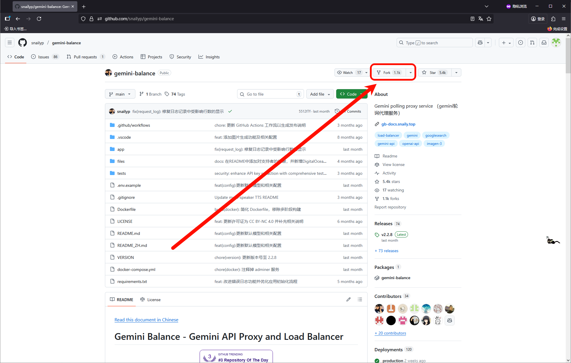 1. 登录Github后,前往snailyp大佬的Gemini Balance仓库【仓库地址↗】